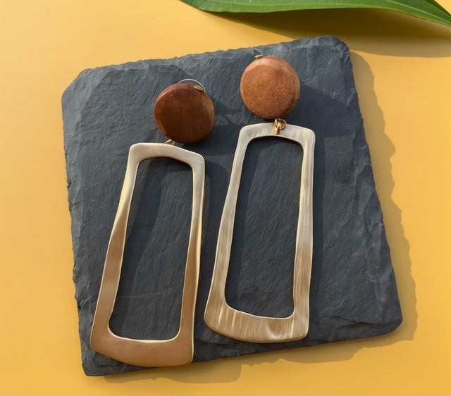 Modern geometric statement earrings designed for women who value effortless style. The gold-tone rectangular earrings pair well with other neutral looks. Super lightweight and comfortable for all-day wear.